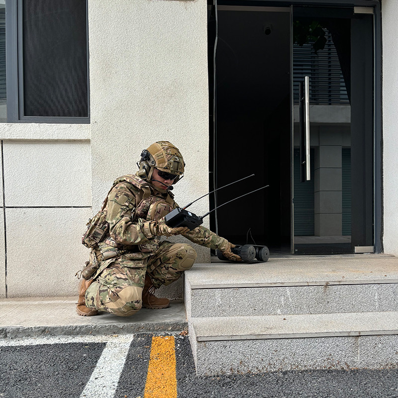 응용 프로그램 R30S는 작고 견고한 탐사 로봇으로 현장에 던져나거나 창문을 뚫고 건물에 침투할 수 있습니다타격할 적절한 순간을 기다리거나 즉각적인 조치를 취하는 것그 크롤러 설계는 지하 파이프, 동굴, 정글, 초원 등 다양한 복잡한 지형에서 탐색 할 수 있습니다.이 로봇 은 앞 에 장착 된 열 촬영 센서 와 뒷 에 장착 된 가시광선 센서 와 함께 독특한 "두중 시력" 디자인 을 갖추고 있다, 열 영상 비디오 및 저조한 빛에서 가시광선 이미지를 모두 캡처 할 수 있도록하여 모든 조명 조건에서 효과적인 정찰을 보장합니다.보조지원팔이 돌면 빨리 바로 잡을 수 있습니다., 운용 능력을 유지합니다.